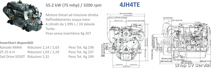 Yanmar 4JH4TE Motore Marino 55.2 kW (75 mhp) / 3200 rpm