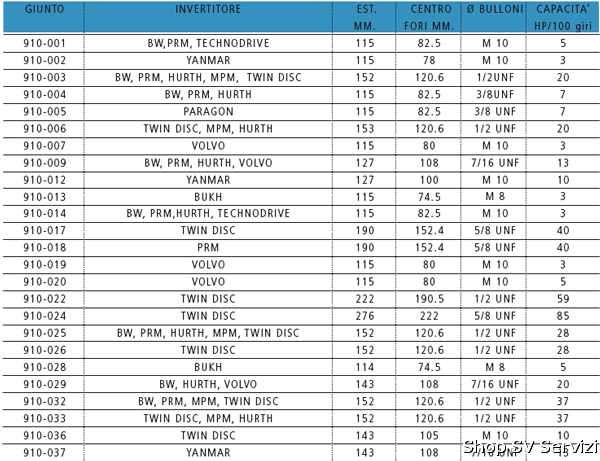 Giunti di accoppiamento I giunti di accoppiamento R&D non richiedono particolari adattamenti, sono semplici da installare e da allineare e riducono in modo sensibile i rumori e le vibrazioni. Sono disponibili per la quasi totalità degli invertitori attualmente in commercio e vengono forniti con dadi e bulloni pronti per l’installazione.