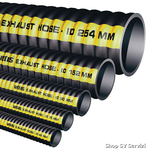 The rubber exhaust hose is the most flexible hose available, because of the large number of spiral turns and the smooth EPDM rubber.
