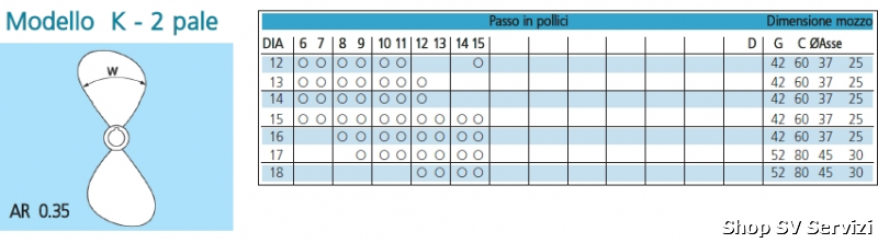 Elica Mikado 2 pale tipo K diam. 14" (pollici), passo da comunicare, diametro asse da comunicare, destra o sinistra